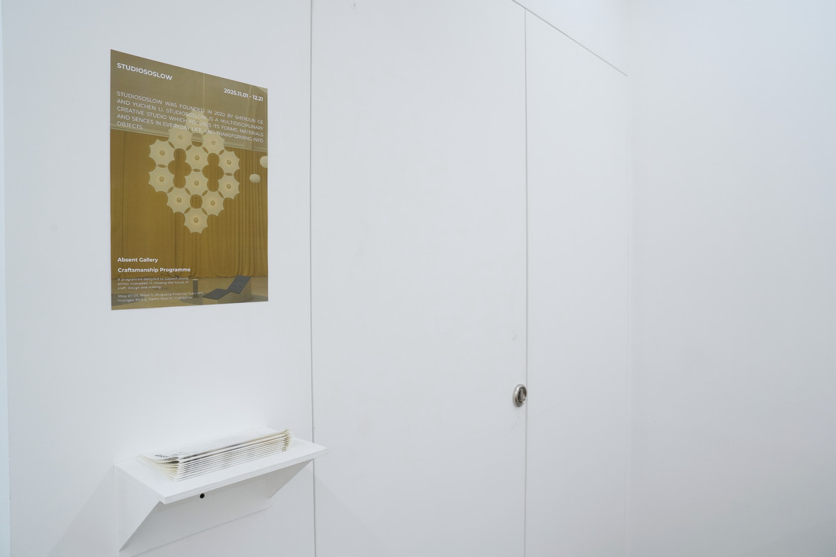 - Studiososlow - 2025.11.01-12.21 - Craftsmanship by Absent Gallery  - STUDIOSOSLOW 由葛珅君和李⾬宸于2020年创⽴。 STUDIOSOSLOW 是⼀家多学科创意⼯作室,专注于探索⽇ 常⽣活中的颜⾊、材料和感觉,并转化为物体。 - Absent Gallery 本期 CRAFTSMANSHIP Programme 呈献多学科创意工作室 studiososlow 的最新力作——“Kite 风筝”系列灯具。我们一贯致力于发掘并扶持那些致力于重塑工艺、设计与制造未来的新兴艺术家。 - 在本系列中,studiososlow 深入汲取传统板式与立体风筝的造型精髓,以当代设计语言重新诠释民间工艺。“Kite 风筝”系列不仅是对非遗技艺的现代转译,更通过深入的工艺实践,探讨了手工艺在代际传承中如何持续激发符合当代精神的文化表达。该作品深刻体现了非遗技艺在当代社会中所能承载的物质价值与情感意义,为传统工艺的当代化提供了富有启发性的实践案例。 - STUDIOSOSLOW was founded in 2020 by shenjun ge and yuchen li. studiososlow is a multidisciplinary creative studio which focuses its forms, materials and sences in everyday life, and transforming into objects. - Absent Gallery's current CRAFTSMANSHIP Programme presents the latest work "Kite" lighting series by the multidisciplinary creative studio STUDIOSOSLOW. We remain committed to discovering and supporting emerging artists who are dedicated to reshaping the future of craftsmanship, design, and manufacturing. - In this series, STUDIOSOSLOW draws deeply from the formal essence of traditional flat and three-dimensional kites, reinterpreting folk craftsmanship through a contemporary design language. The "Kite" series not only serves as a modern translation of intangible cultural heritage techniques but also, through in-depth craft practice, explores how handicraft can continuously inspire cultural expressions aligned with contemporary spirit across generational inheritance. This work profoundly demonstrates the material value and emotional significance that intangible cultural heritage techniques can carry in modern society, offering an inspiring practical case for the contemporary reinterpretation of traditional craft.