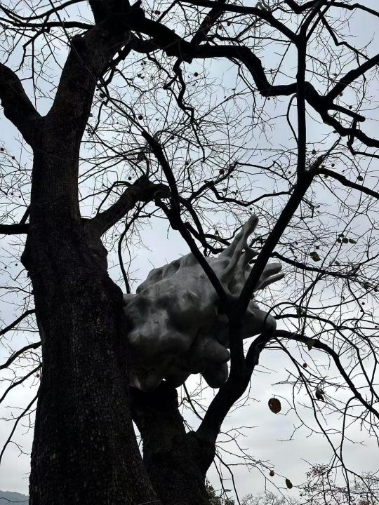 这件由强化学习模型⽣成的作品,主动摒弃了象形符号的桎梏,将自己交付给随机选定的树枝和不可预测的⾃然⼒量,⽡解了技术乌托邦对“全盘可控”的幻想。这呈现了一种“后数字崇高”(post-digital sublime),它的创作过程颠覆了传统艺术生产的逻辑——艺术家不再是唯⼀的造物主,AI、树木、天气共同成为了创作的参与者。在这里,机器逻辑与有机系统互动中的不可预测性促使控制与失控的边界被彻底模糊,作品的“完成”恰恰在于其不可避免的坠落与破碎。