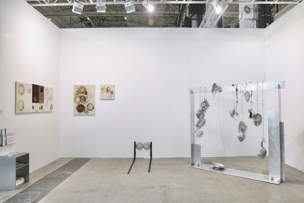 ding! ding! dong! dong! (2025) is a narrative series about kitchen cacophony, using handmade and collected aluminum utensils to translate the rhythm of physical labor into a sonic fabric through repetitive tapping and pounding. From a feminist perspective, the artist explores the relationship between sound, labor, and daily life, narrating the ordinary space through poetic language.
